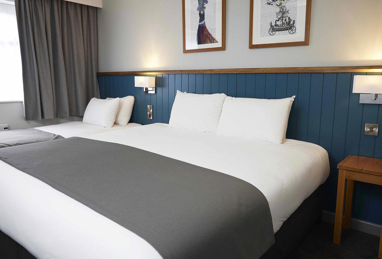 The Bay Horse is located in the market town of Ashton-in-Makerfield, close to Haydock Park Racecourse, a 15-minute drive south of Wigan. The pub is popular with rugby and football fans with good access to the Brick Community Stadium, home of the Wigan Warriors and Wigan Athletic. Choose from 28 single, double, twin, accessible, and family bedrooms. Book a stay and enjoy Greene King ales & beers.
