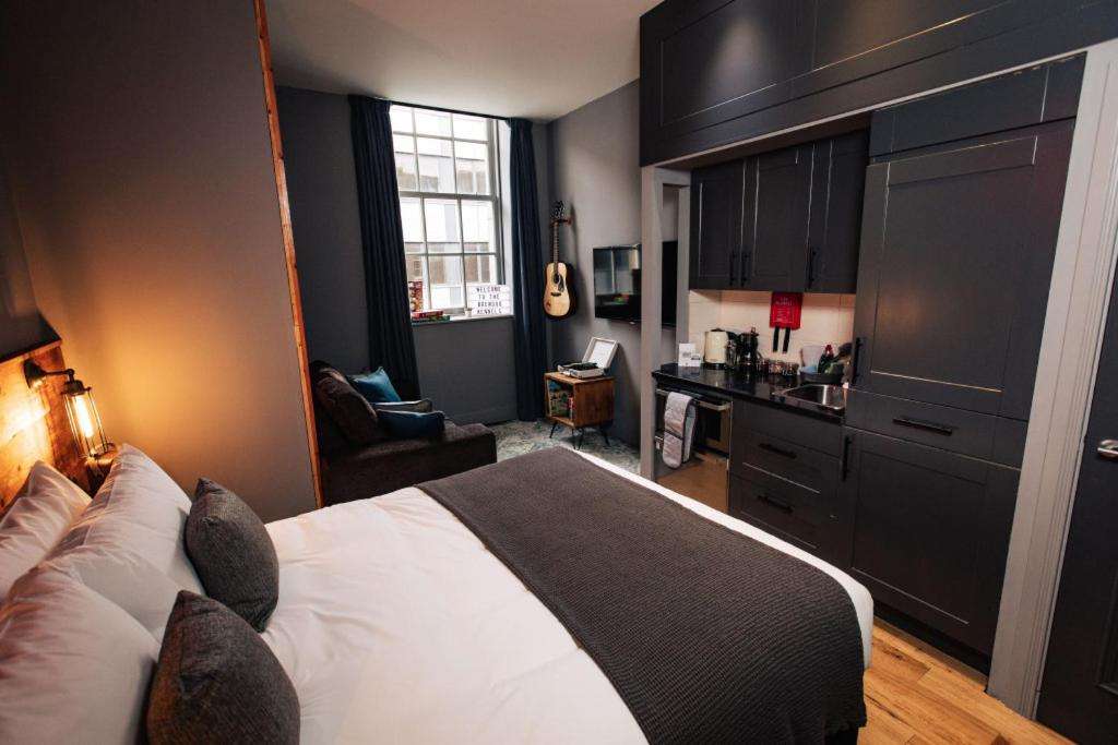 The 26 bespoke bedrooms come with a shower beer fridge, guitar & record collection, writing desk, mini-bar, artisan coffee & tea, TV, and WiFi access. There is a choice of Studio and Deluxe Studio rooms.