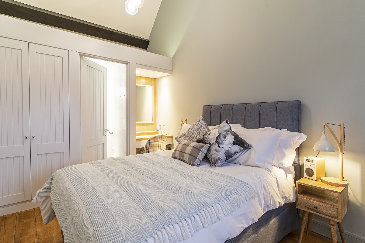 Barn Rooms -These bedrooms are doubles, with one also providing greater accessibility. This room can be configured as a super king or twin room and comes with an en-suite wet room and level access shower.