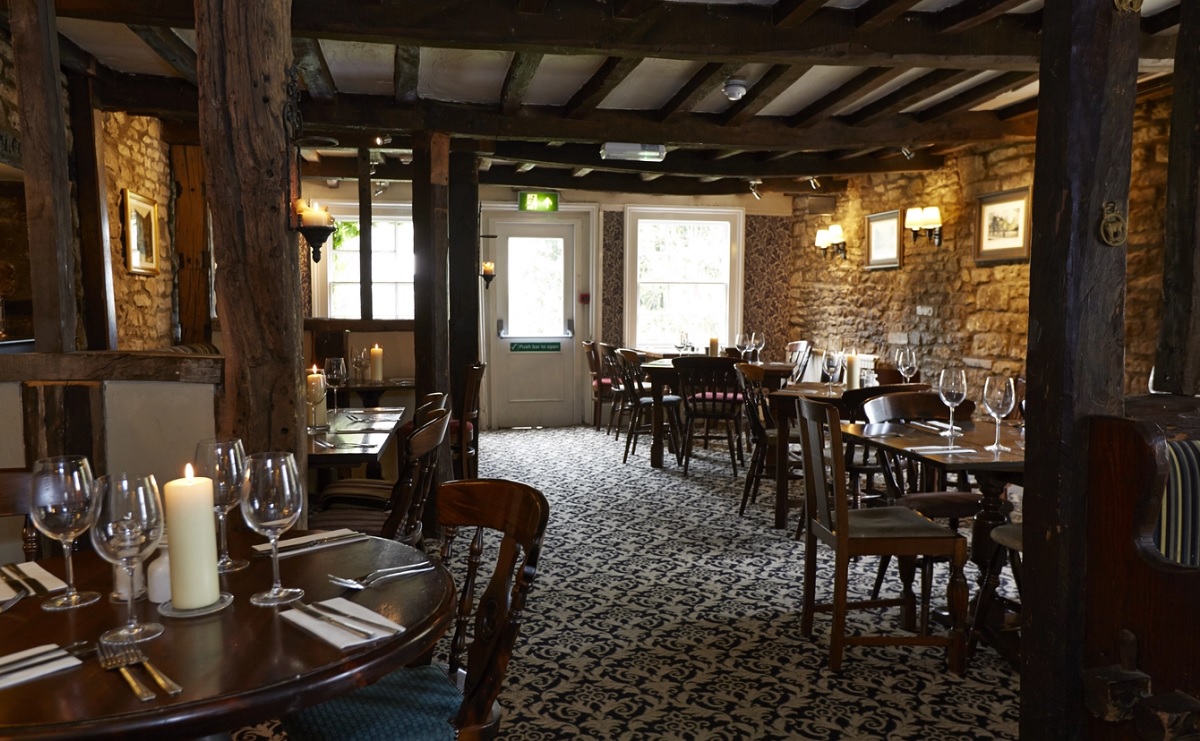 Hunters Hall Inn is a welcoming old coaching inn with beamed ceilings, flagstone floors, open fires, and a well-stocked bar. Dog and family friendly, the pub sits on the A4135 in the village of Kingscote, a ten-minute drive from Tetbury. Choose from 13 comfortable double, twin, and family bedrooms housed in a converted stable block. Book a stay and enjoy Greene King ales and beers.