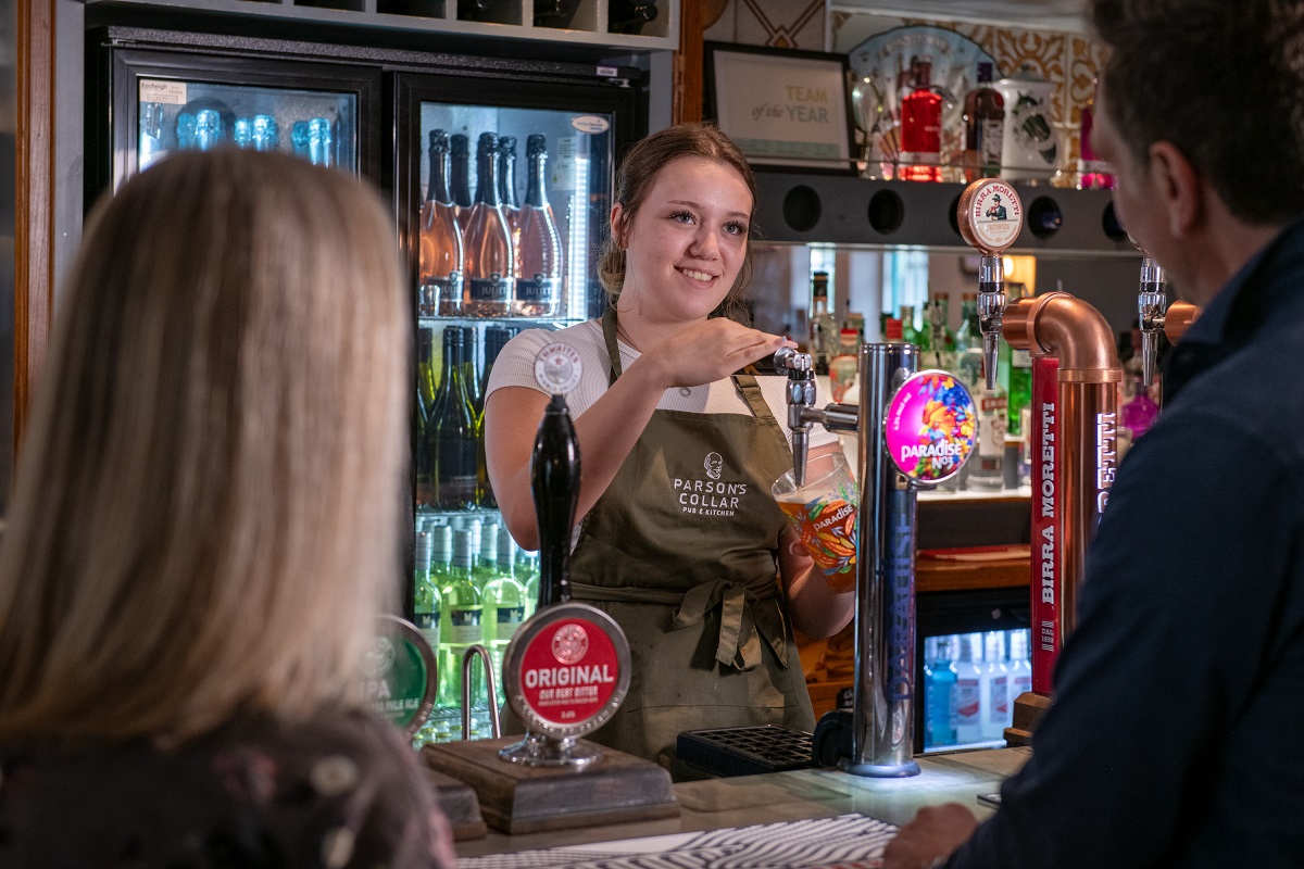 Parson’s Collar serves delicious pub classics, build your own burgers, homemade pizzas, sharing plates, sides, and tempting desserts. There are also good options for guests with children. The bar is well-stocked with thirst quenching Thwaites cask ales. Choose from an eclectic choice of wines, beers, spirits, mixers, and soft drinks. There is also a ‘cocktail tap’ offering a choice of drinks perfect for the summer months.