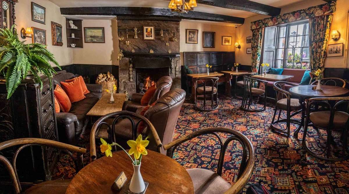 The dog friendly bar is a cosy sanctuary with oak beams, wooden floors, and open fires.