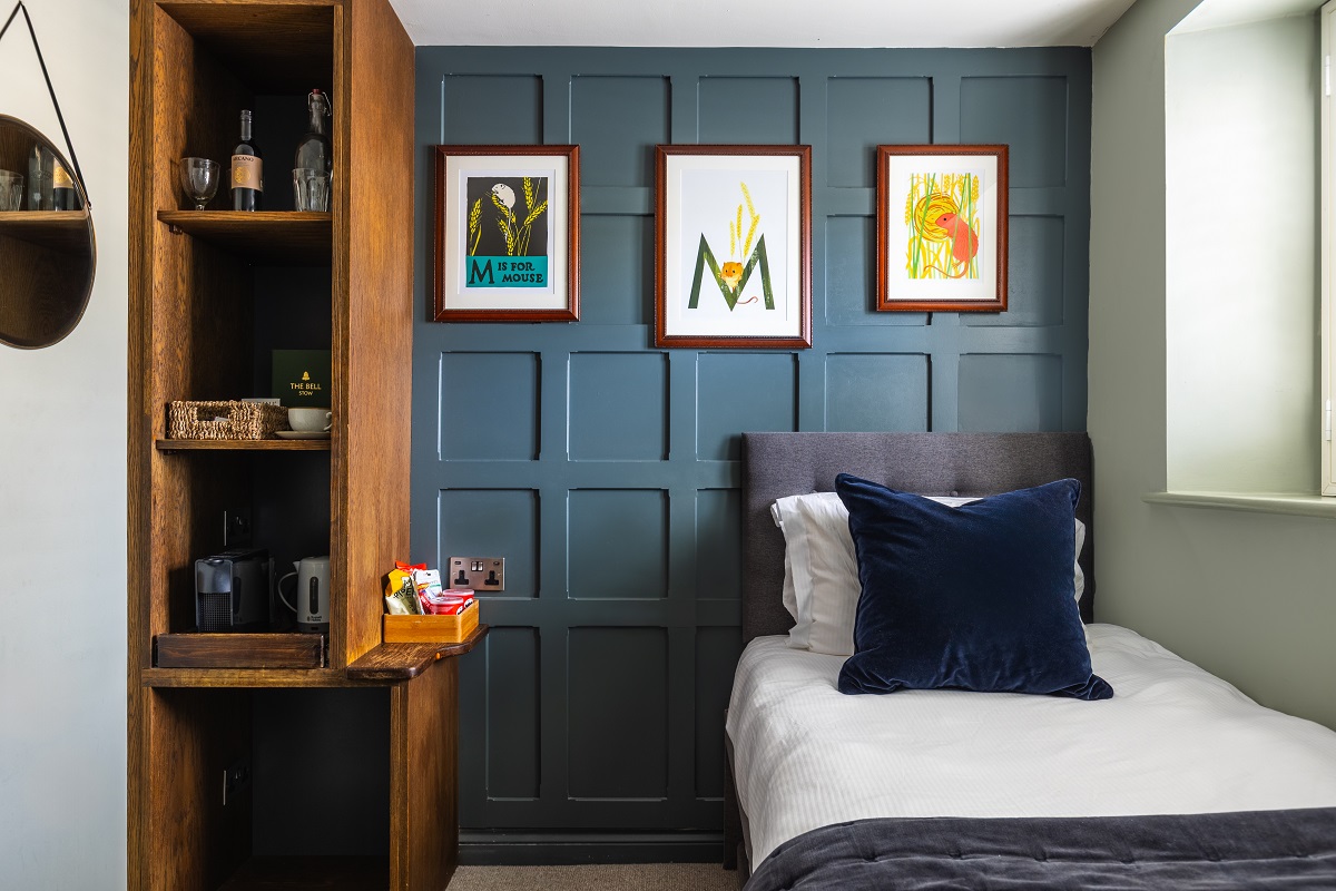 Each of The Bell’s 14 boutique bedrooms have been beautifully designed. Five are perched at the top of the pub, and a further nine a short stroll away in Stuart House. Choose from Cosy, Boutique, and Bigger Boutique bedrooms. Each en-suite room comes with Bramley toiletries, a snack basket, Nespresso machine, and WiFi access. Dogs are welcome on request, with prior acknowledgement directly with the pub in some rooms, whilst others are family friendly.