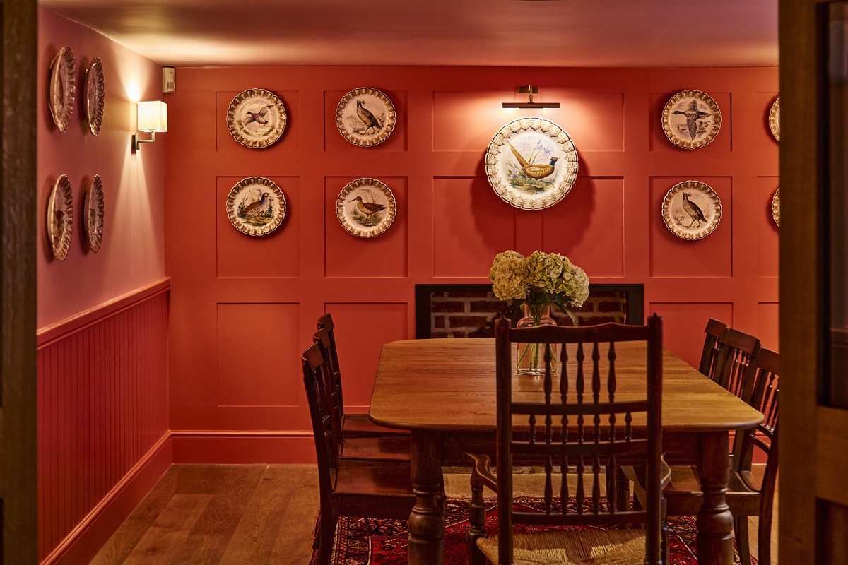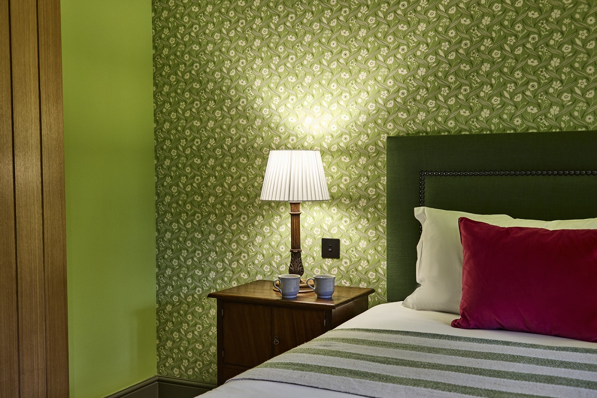 The Black Horse has seven beautiful bedrooms, each individually styled with wallpapers inspired by nature, locally sourced antiques, and modern en-suite bathrooms. Guests can choose between rooms on the East Wing (king-size beds with generous showers, two with private rooftop balconies) and the West Wing (king size or twin beds, two with roll-top bathtubs). Dogs are welcome on request, with prior acknowledgement directly with the pub.