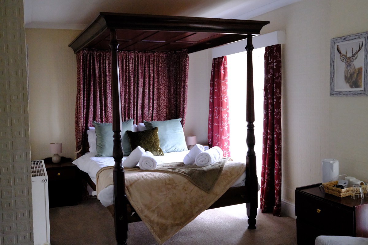 Choose from eight double, twin, four poster and family en-suite bedrooms.