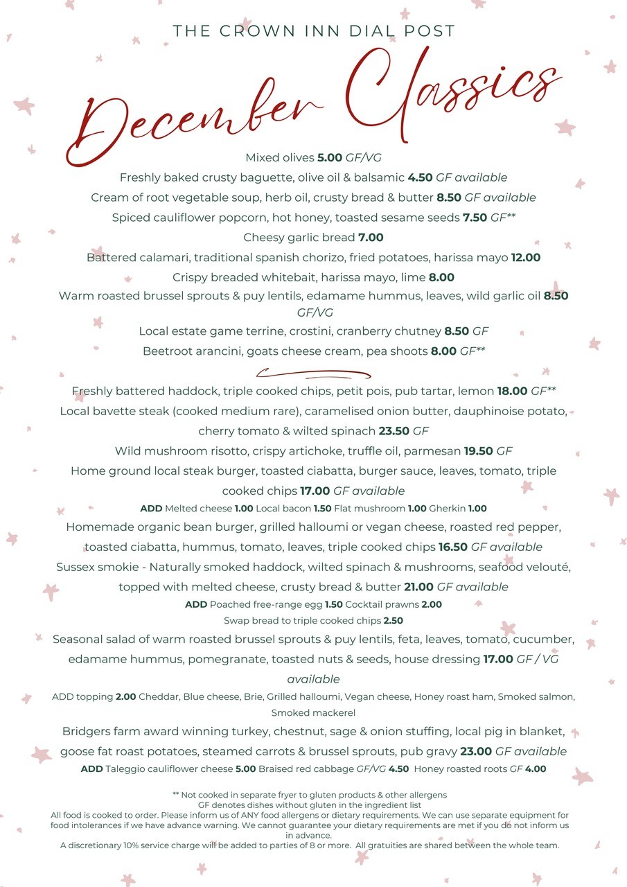 The Crown Inn is an award-winning, family-owned pub, located opposite the village green in the village of Dial Post, a short drive south of Horsham. The pub has four beautifully decorated en-suite bedrooms above the pub and two stylish self-catering cottages. With good options for both family and dog friendly stays, the pub is renowned for their delicious pub classics, a dedicated pie menu and seasonal specials.