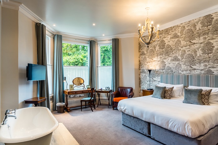 The elegant High Field Town House is a few steps from the pub and houses 12 individually designed, air-conditioned bedrooms. The rooms are beautifully furnished with antiques, top-quality beds, and the latest technology. Choose from single, double, twin, king, premium, and family en-suite bedrooms. Dogs are welcome on request, with prior acknowledgement directly with the pub in a few rooms.