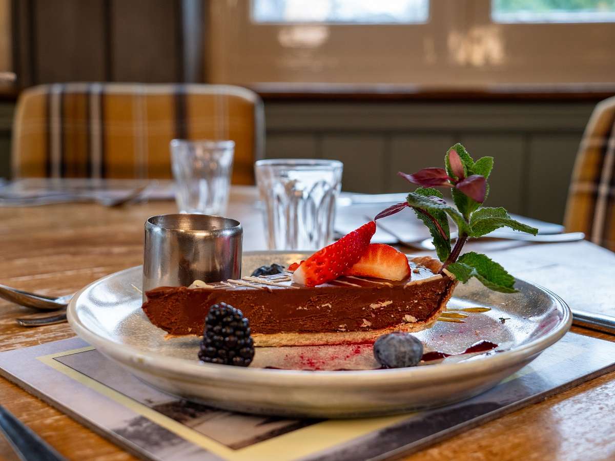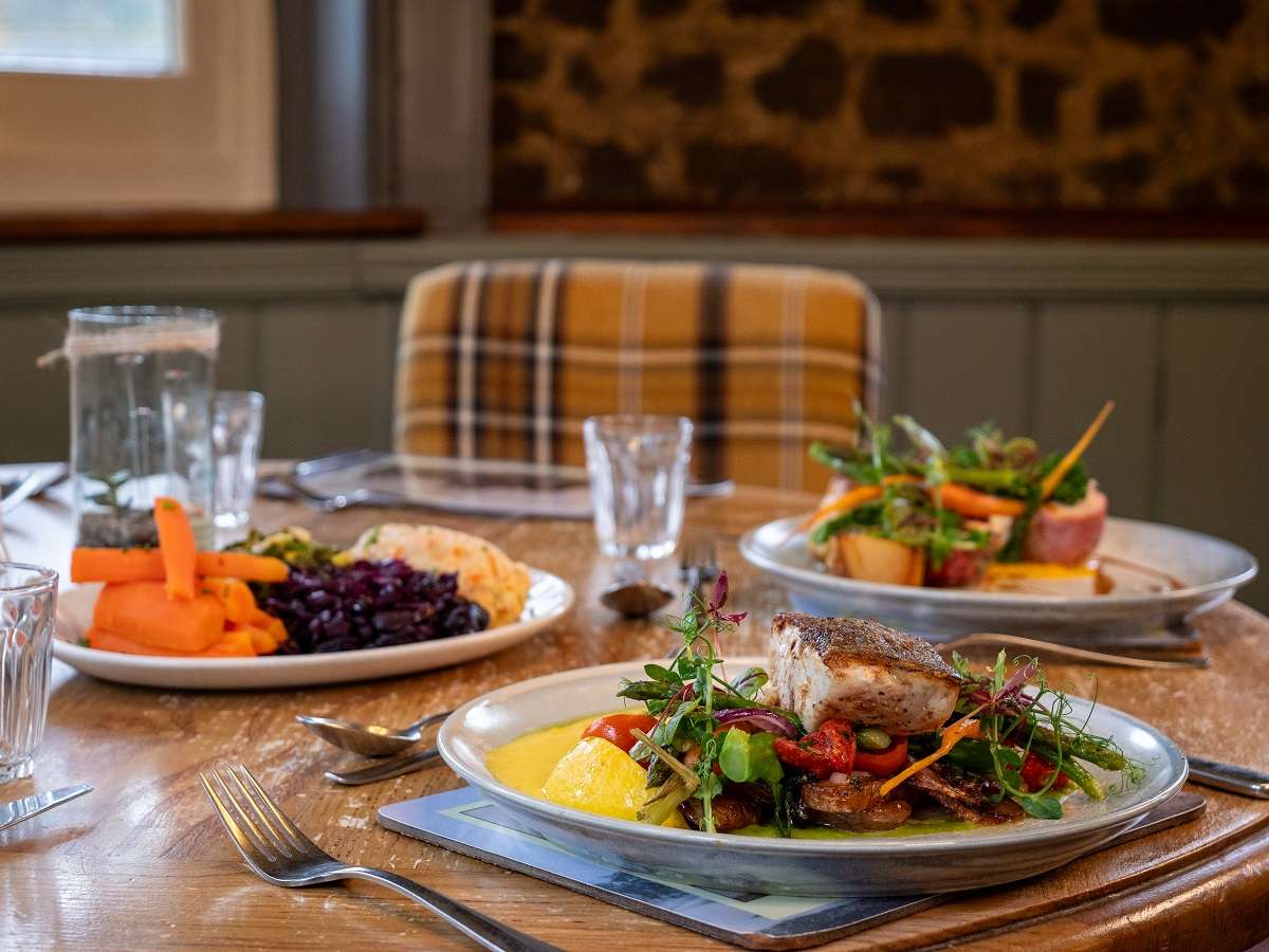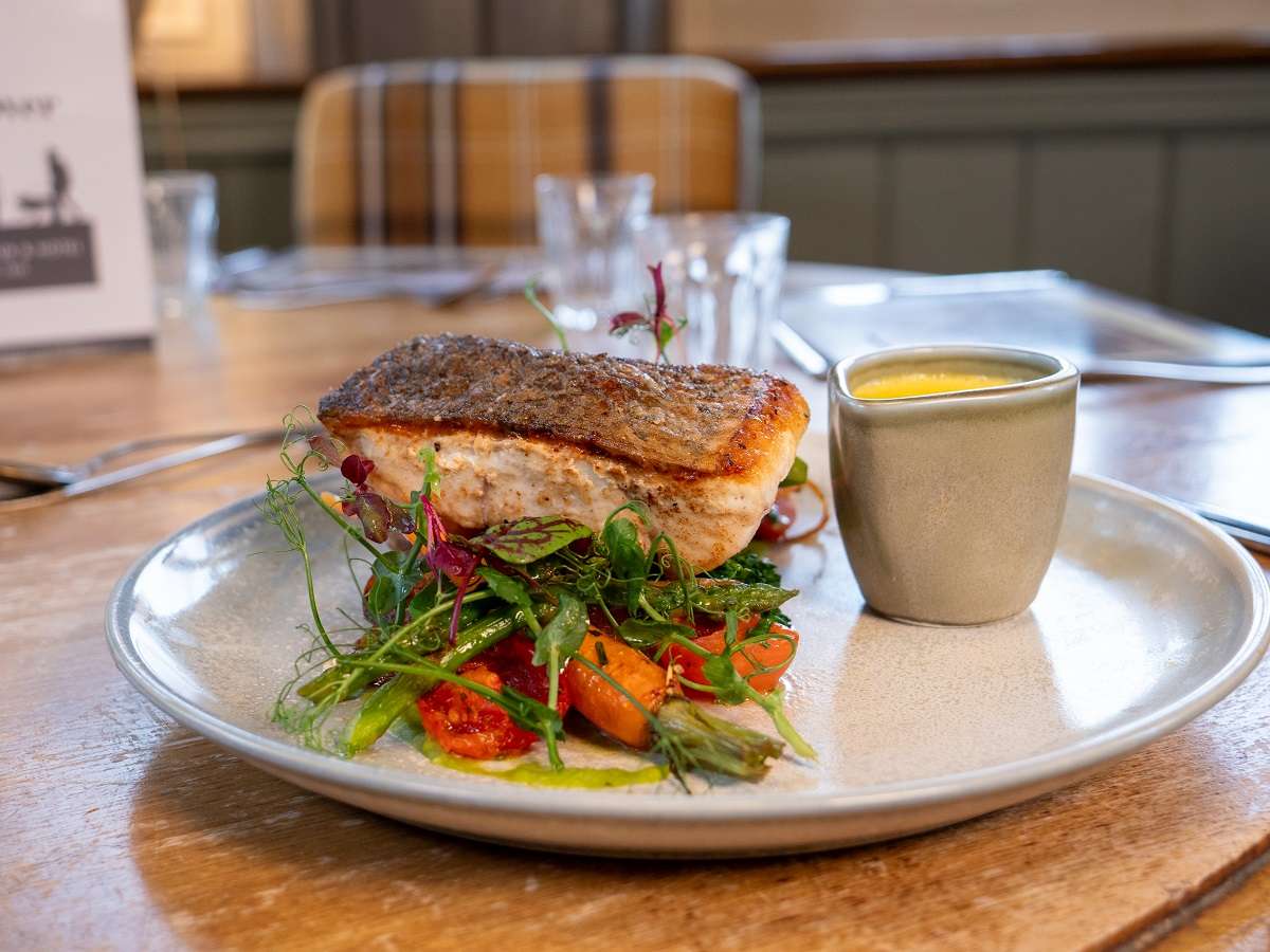 The bar has an open log fire and cosy seating. Choose from cask ales, draught beers, artisan spirits, an eclectic wine list, and non-alcoholic drinks.