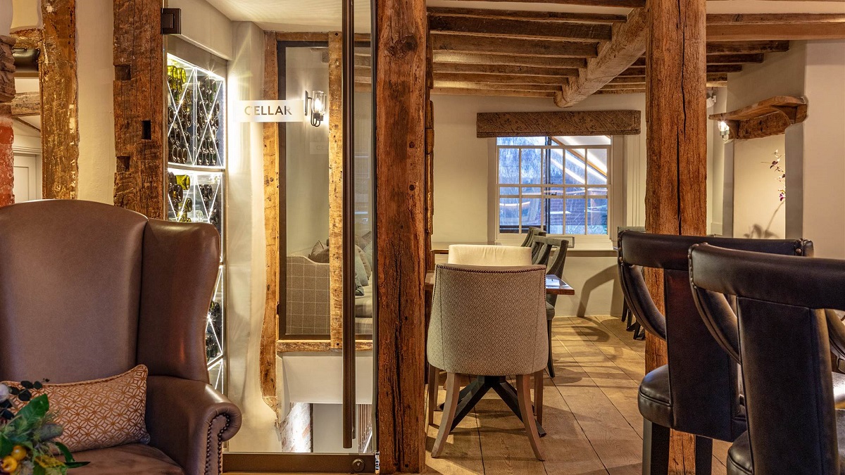 Expect breathtaking views across the valley, an open kitchen, restaurant serving a seasonal British menu, and sociable terrace. Dating to the 17th century, the bar is situated in the oldest part of the building and is the perfect place to enjoy drinks fireside.