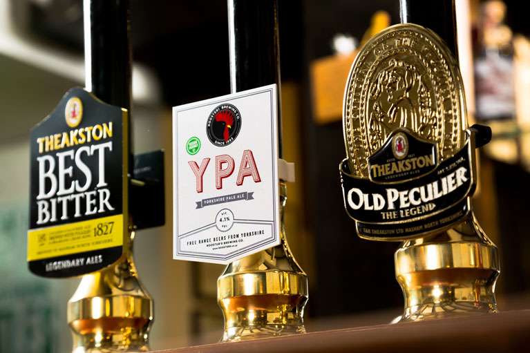 The bar is well-stocked with local real ales brewed in Yorkshire. Theakston Old Peculier, Best Bitter, and Roosters YPA are their permanent cask ales, and from time to time the pub also has an occasional guest ale. The pub also serves a range of Nidderdale gins including Sing (Kettlesing) and Whittaker’s (Dacre Banks), malt whiskies, mixers, and good non-alcoholic options.
