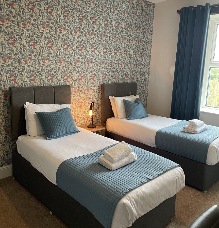 The eight en-suite bedrooms at The Wheatsheaf Inn offer a blend of comfort and simplicity, with modern bathrooms, tea & coffee making facilities, a hairdryer, TV, and WiFi access. Choose from double, twin, and family rooms. Dogs are welcome on request, with prior acknowledgement directly with the pub.